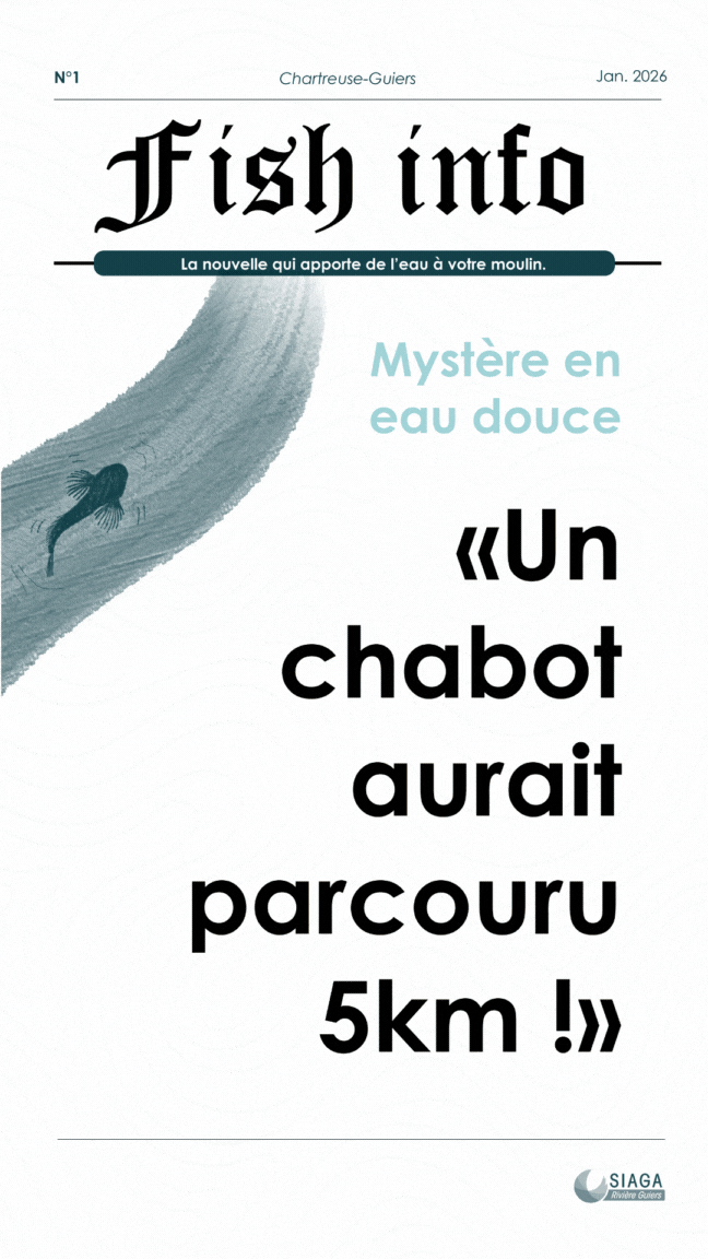 Elle révèle un autre type d’exploit. A la surprise générale, un chabot aurait parcouru 5km ! D’ordinaire cette espèce n’est pas si aventurière. Même si l’intérêt des aménagements opérés a été confirmé, le SIAGA mène l’enquête. Plusieurs pistes sont envisagées concernant l’ascension fulgurante de ce petit poisson. Aurait-il été aidé par un oiseau ou un humain ? A-t-il bénéficié d’un courant inverse ou était-il engagé dans une course très serrée ? Le mystère reste entier. Octroyons le bénéfice du doute à cet athlète et saluons ses performances sportives : Chabot bas.